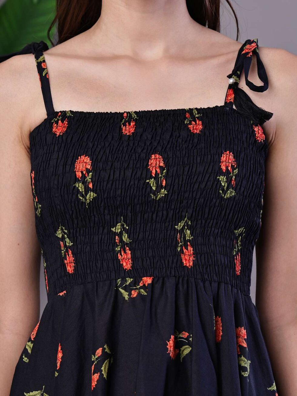 Women’s Black Floral Printed Cotton Handkerchief Hem Dress Midi Dresses